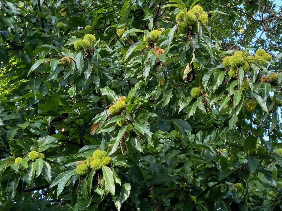 Et puisque nous avons un magnifique châtaignier au nord de notre potager, voici ce qu’en dit Cavarec : « Protecteur, fort et généreux, il est un arbre rassurant tout en étant moins dominant et impressionnant que le chêne. C’est un allié puissant pour traverser les obstacles et les situations difficiles, y compris celles pour lesquelles nous ne voyons pas d’issue. Le châtaigner est doté d’une énergie joyeuse et pleine de clarté.Il stimule avec entrain l’élan de vie et d’action enthousiaste. Il stimule la créativité pour trouver des solutions en soi. Sur le plan physique, il facilite la circulation veineuse« .