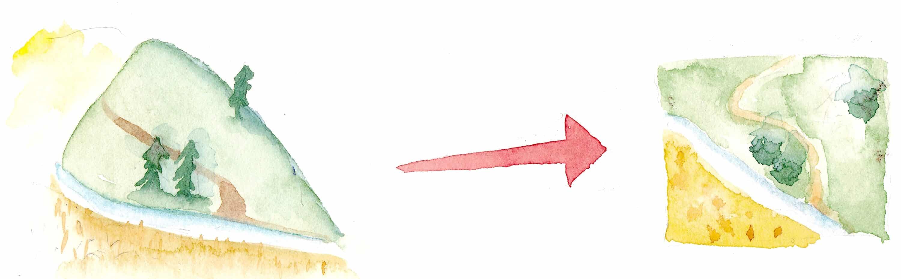 Analyse, lecture du lieu, première structuration, plan principal.