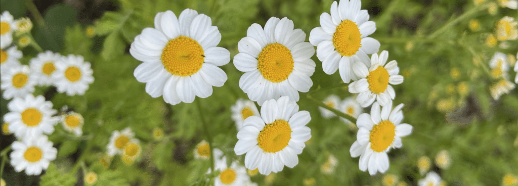 - La Camomille matricaire Matricaria chamomilia, la plus douce et utilisée en infusion et en huile essentielle.