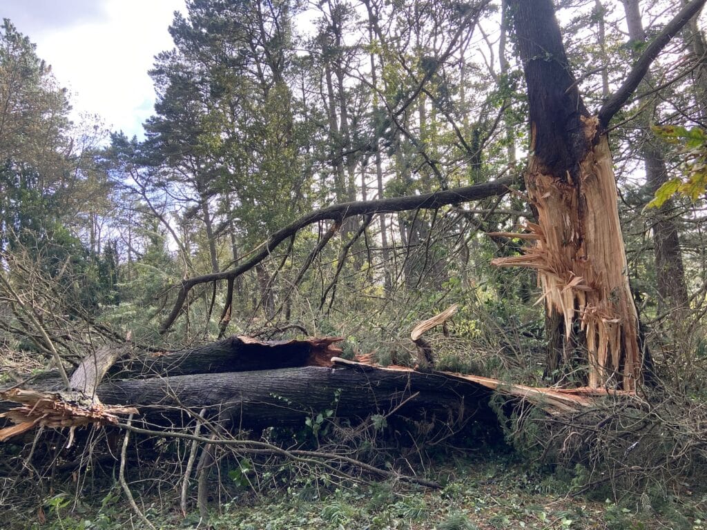 Et encore, nous étions dans une maison, calfeutrés, à l’abri, derrière des murs épais. Mais les arbres, eux, n’avaient rien pour se protéger. Pire même, leurs feuilles n’étaient pas encore tombées et ont offert autant d’éléments de résistance, de mur, qu’une telle force n’en vient à bout que par déracinement, arrachage, broyage…