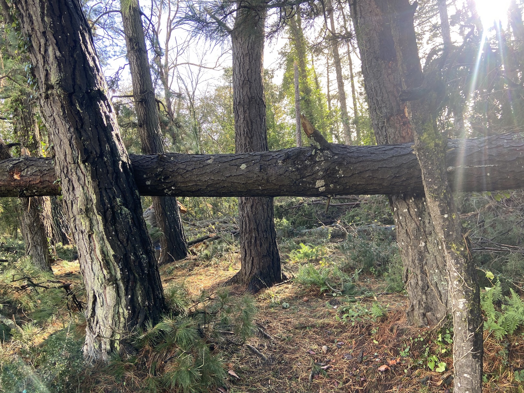 Sur les milliers d’arbres qui sont autour de moi, plusieurs centaines sont tombés sur le sol laissant de grands espaces vides. La tempête Ciaran n’en est pas une. C’est un véritable ouragan qui a emporté autant d’arbres, branches et…quelques ardoises et autres zinc de la maison.