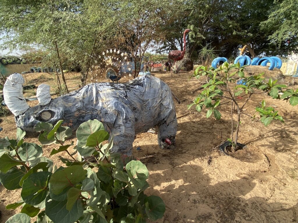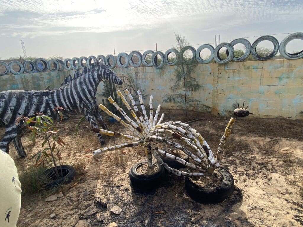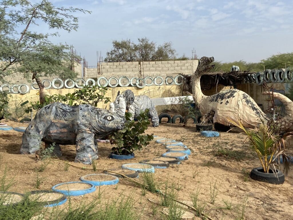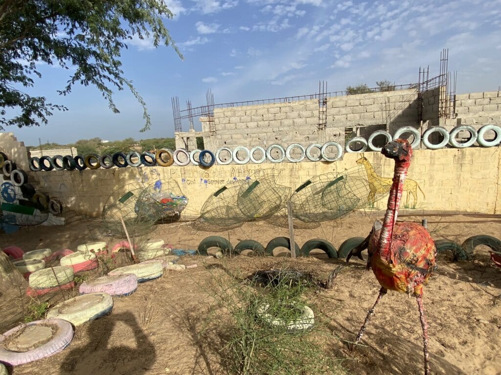 Il y a peut-être bien une solution… le recyclage. La visite de l’équipe de Ndoumboudj à Saint-Louis va peut-être déboucher sur une collaboration avec l’artiste Samba Sarr qui crée des œuvres personnelles ou collectives avec des enfants, à partir de déchets plastiques ou de canette. Ses œuvres collectives se construisent dans un centre situé au sud de Saint-Louis dans le village de Rao. 3