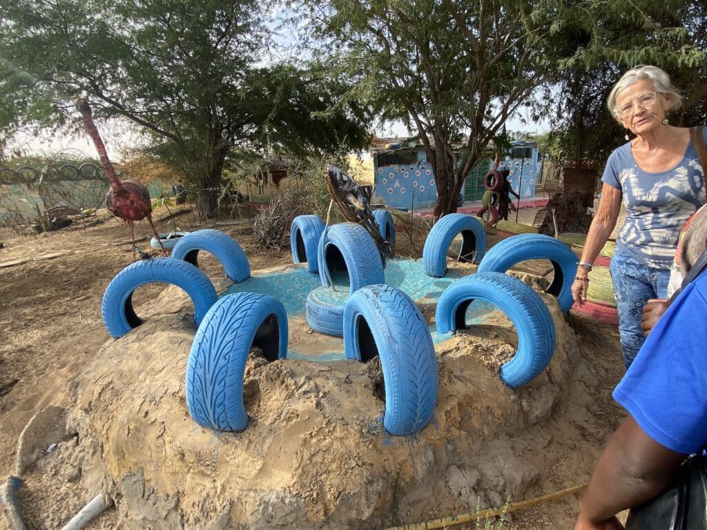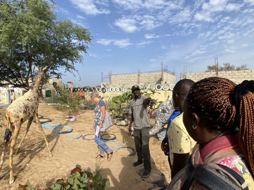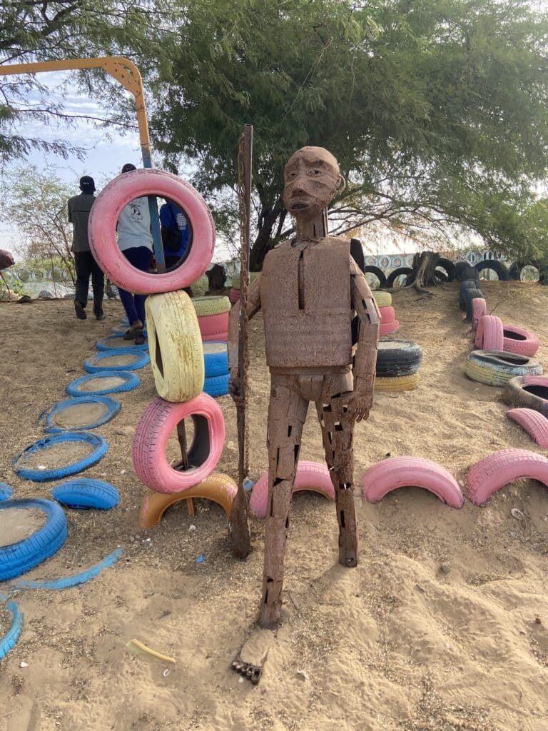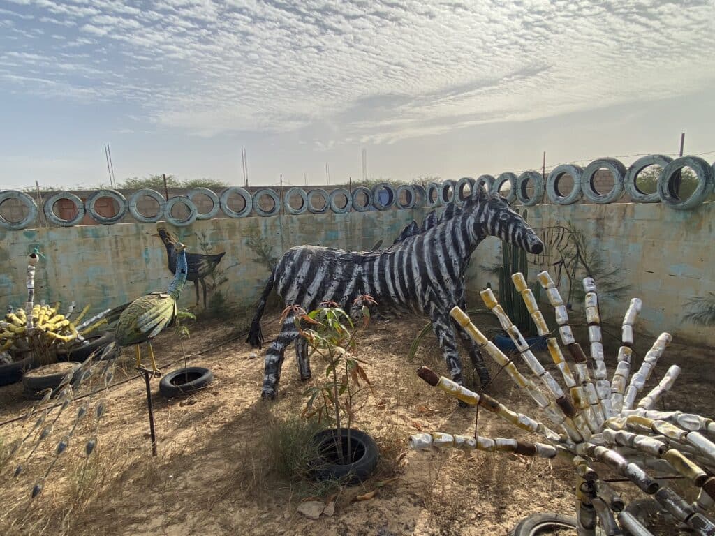 Il y a peut-être bien une solution… le recyclage. La visite de l’équipe de Ndoumboudj à Saint-Louis va peut-être déboucher sur une collaboration avec l’artiste Samba Sarr qui crée des œuvres personnelles ou collectives avec des enfants, à partir de déchets plastiques ou de canette. Ses œuvres collectives se construisent dans un centre situé au sud de Saint-Louis dans le village de Rao. 3