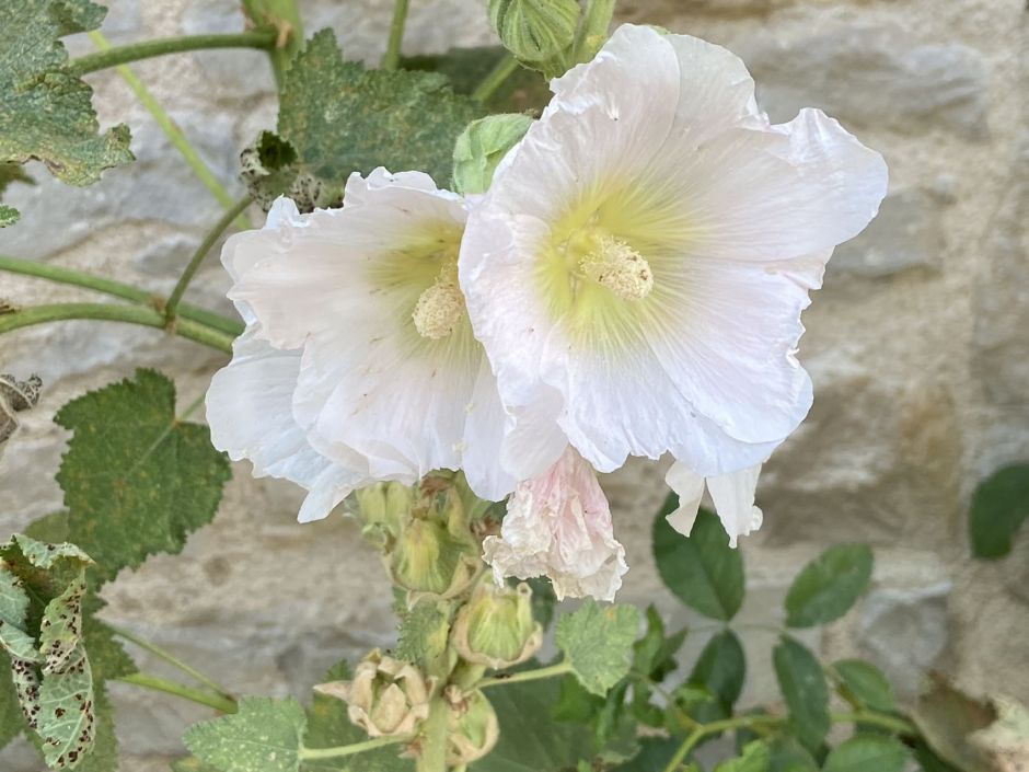 Dans notre potager de Hoeilaart, chaque fois que je présente nos deux guimauves officinales (Althaea officinalis), les participants me reprennent en signalant que ce sont des roses trémières et à chaque fois, je leur signale que j’ai bien semé des guimauves officinales qui, elles-aussi, sont de la famille des Malvacées. Alors que la rose trémière est loin de s’éteindre, la guimauve officinale devient assez rare parce qu’elle n’est plus cultivée pour sa racine. C’est avec le mucilage extrait de la racine de guimauve officinale que l’on fabriquait autrefois les bonbons à la guimauve, sous forme de pâte de guimauve. 4