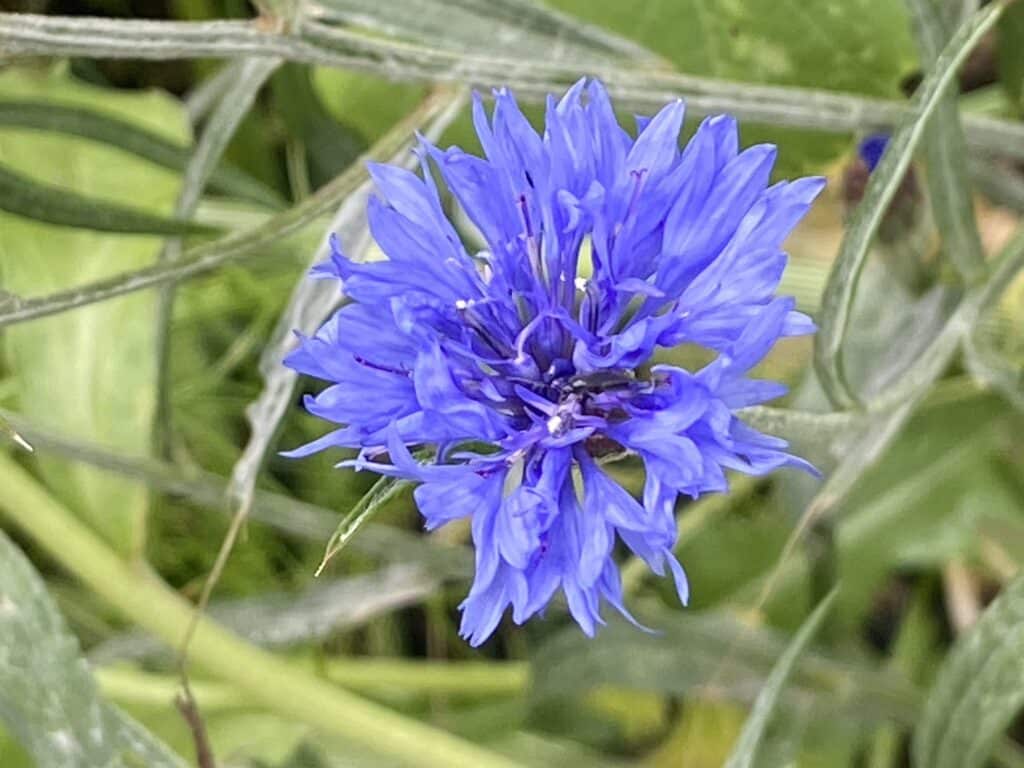 Le bleuet fleuri lorsque la céréale qui l’accompagne est arrivé à maturité. Cela fait d’elle une plante messicole, c’est-à-dire qui nous délivre un massage pour qui peut l’écouter. Ceci dit, au moment de cette floraison, les pollinisateurs du bleuet se précipitent sur le champ. Autrefois, le blé et le bleuet étaient récoltés en même temps.