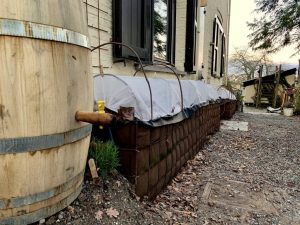 Un potagiste averti en vaut deux ! Sous les tunnels, il est important de vérifier que les plantes en cours de maturation comme la mâche, certaines salades d’hiver, certains légumes racines soient bien protégés, du reste comme le sol. La meilleure couverture du sol sont les plantes mêmes. Dans un tunnel, l’idéal est d’avoir des plantes à foison. Malgré le temps plus maussade en ces périodes automnales voire hivernale, les légumes poussent encore mais de manière ralentie. Les tunnels avec voile de forçage laissent passer la lumière et la pluie. En cas de gros gel, il est parfois utile de créer une double couche de voile de forçage pour mieux protéger les plantes. En cas de très gros gel plus que – 10°C, il est préférable de mettre une chaufferette à l’intérieur du tunnel. Je vous donnerai des indications sur ces chaufferettes dans le prochain article.