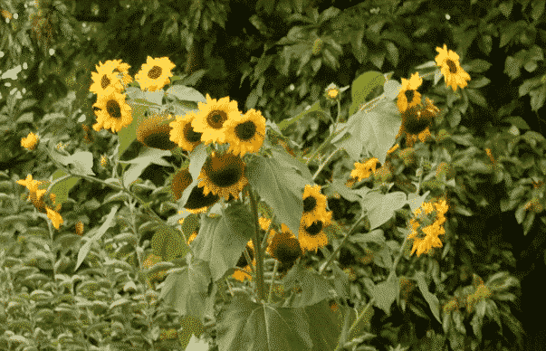 L’on sait aussi que lorsque l’on détermine un endroit exact dans la nature, on n’est pas forcément parfaitement au centre. Il suffit de creuser le trou un peu plus à droite ou à gauche… Je ne connaissais pas cette variété de tournesol et tout portait à croire que la taille était haute (environ 3 m) et le port des fleurs était une imposante fleur et environ 8 petites fleurs. Et voilà que le tournesol « Tiger eye Mix » est monté à 4,5 m de haut et nous a fait 33 fleurs, dont trois d’un très beau diamètre. J’ai repiqué d’autres tournesols du même paquet, un peu plus loin, et nous n’avons jamais obtenu le même résultat.