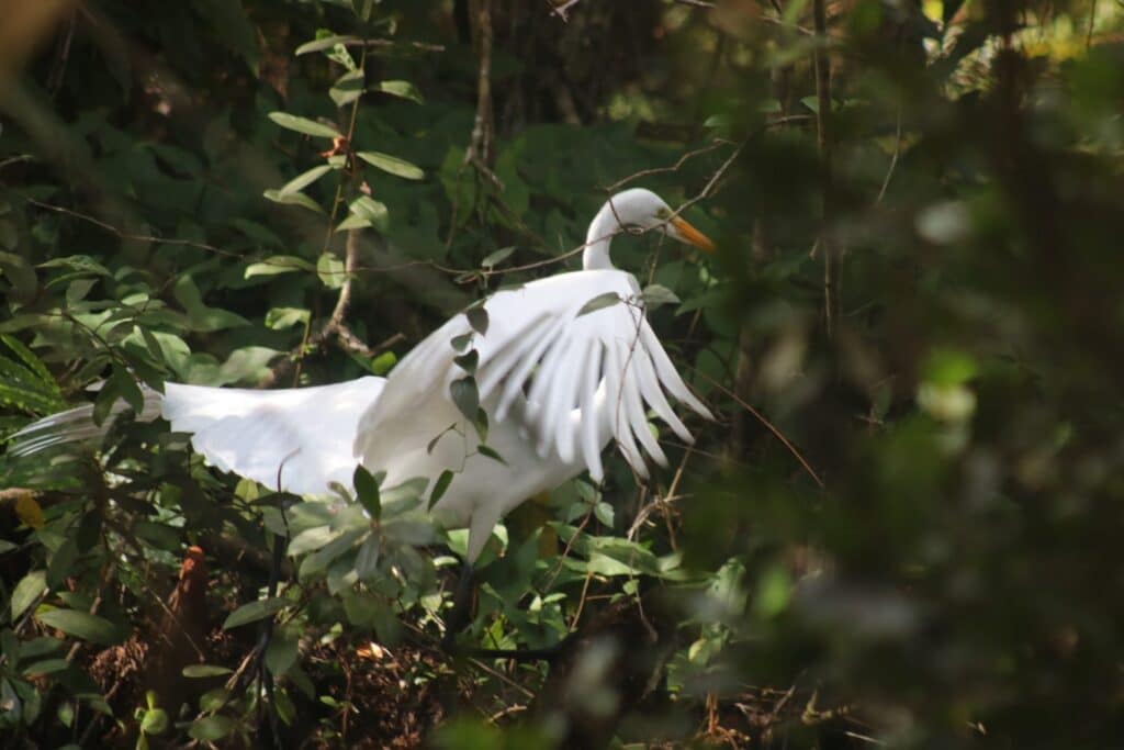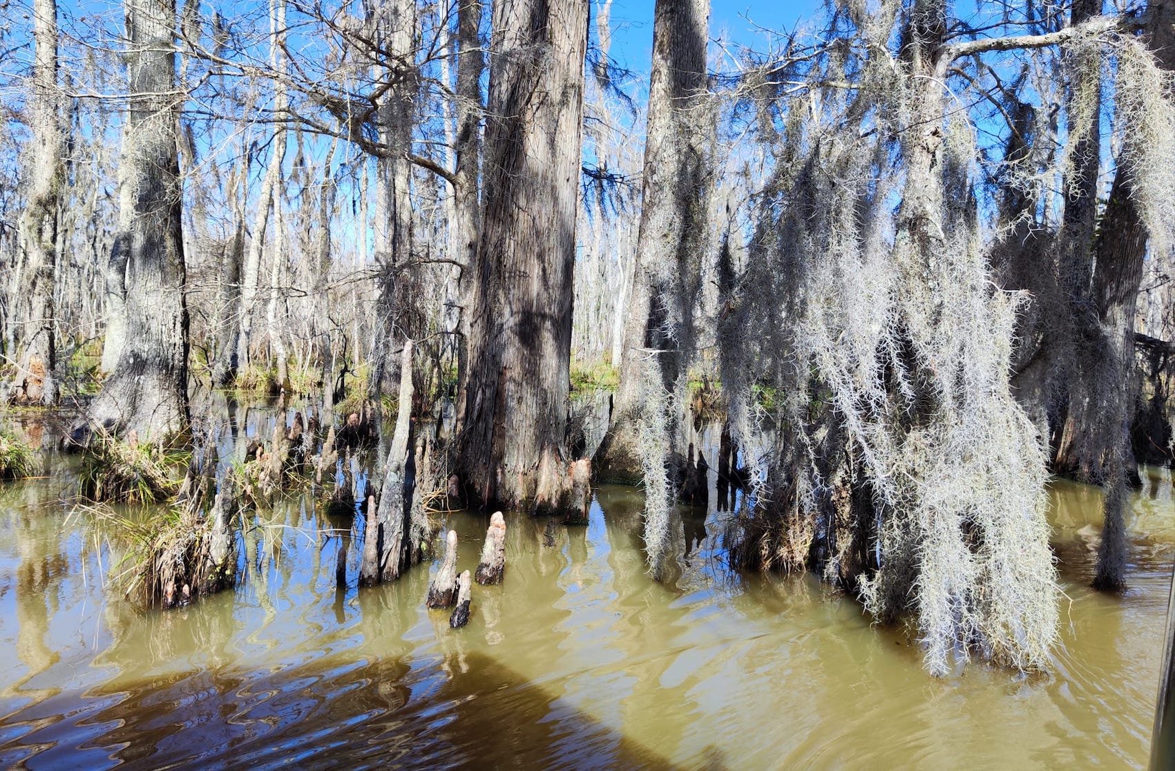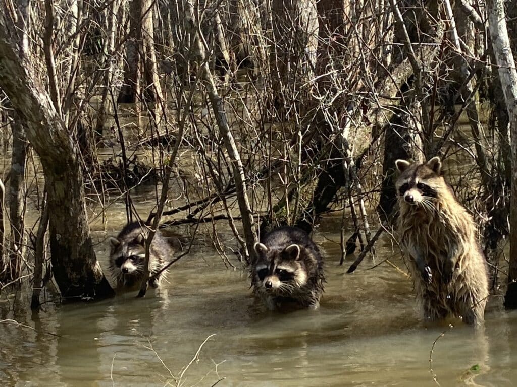 - C’est l’un des marais fluviaux les moins altérés des États-Unis. Considéré par beaucoup comme l’un des habitats marécageux les plus intacts des États-Unis, le marais de Honey Island couvre une zone de plus de 30 km de long et de près de 10 km de large, avec 34 896 de ses 70 000 acres (280 km²) préservé par le gouvernement en tant que zone de protection permanente de la faune et de la flore. Les animaux qui vivent dans le marais de Honey Island sont les hiboux, les sangliers, les ragondins, les serpents, les tortues, les aigles à tête blanche, les ours noirs les alligators, les ratons laveurs et les tortues. Nous avons découvert les trois derniers cités. ↩︎