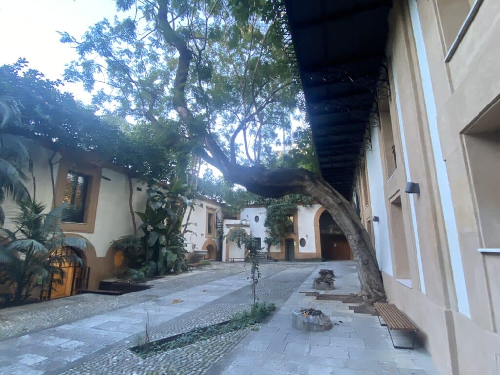 Lors de la restauration du bâtiment après 2006, les propriétaires du Palazzo ont conservé les chenaux et la racine sur toute sa longueur. La partie visible fait environ 16 m de long. Une partie des racines passe sous le bâtiment à l’abri des regards en s’enfonçant plus profondément dans un réservoir d’eau. Voilà donc ce qui peut se passer sous terre sans que l’on puisse découvrir pourquoi ce l’eau de pluie n’arrive pas à bon port !