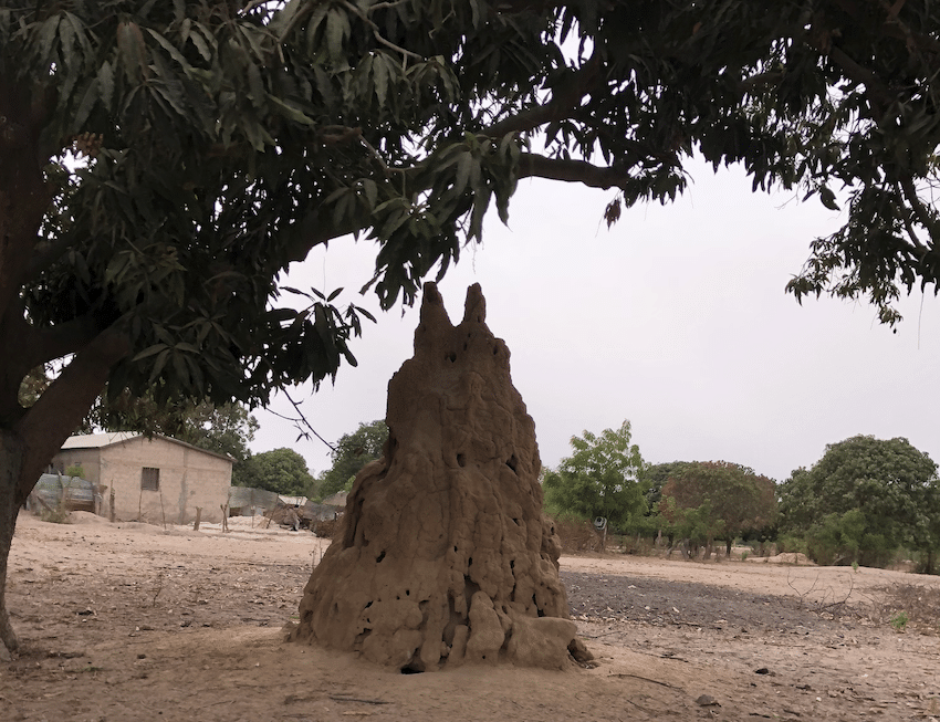 Avec l’équipe de la ferme pédagogique de Ndoumboudj, nous avons déjà démontré la différence de richesse entre le sol classique de la ferme et le sol issu d’une ancienne termitière. C’était lors de notre première visite. Florian t’Serstevens, mon coéquipier,