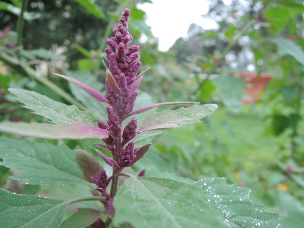 Cette variété du Chenopodium album est appelée aussi Chenopodium amaranticolor (Chénopode couleur d’amarante). Elle est originaire de l’Inde, du Népal et de la province du centre-ouest du Sichuan (Chine). La ressemblance est telle que j’ai cru un instant que ce chénopode était une variante créée par l’homme. La seule différence est qu’à la base des feuilles, la couleur amarante donne un bel effet décoratif. Cette couleur disparaît en été. Pour le reste, elle est en tout point identique que sa consœur Album, bien qu’elle peut atteindre une taille de 2 m.